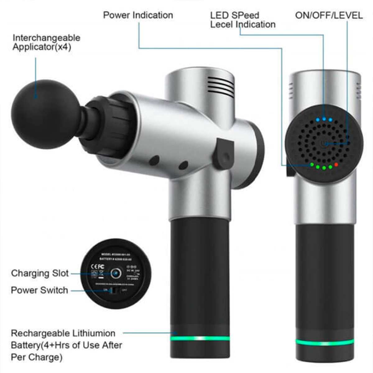 This personal handheld massager gun helps you overcome muscle soreness, relieve body fatigue, combat stiffness and spasms. Just enjoy the deep tissue massage and relaxing at home, office or during a long trip!